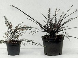Richtige Containergröße, der Pflanze angemessen. Größere Container mit mehr Substratvolumen bieten mehr Sicherheit im Zwischenlager, sowohl im Facheinzelhandel als auch auf der Baustelle, sowie nach dem Auspflanzen, besonders bei ungünstigen Standortverhältnissen.