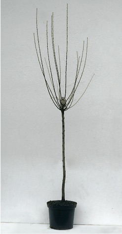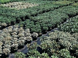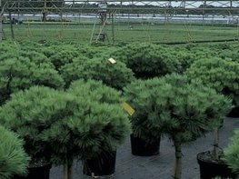 Typische Garnierung der Gattungen, Arten und Sorten durch ausreichend weite Abstände auf den Stellflächen. Guter Wurzelballen mit sich neubildenden Wurzeln. Regelmäßiges Umtopfen in der Baumschule garantiert eine gute Wurzelentwicklung.