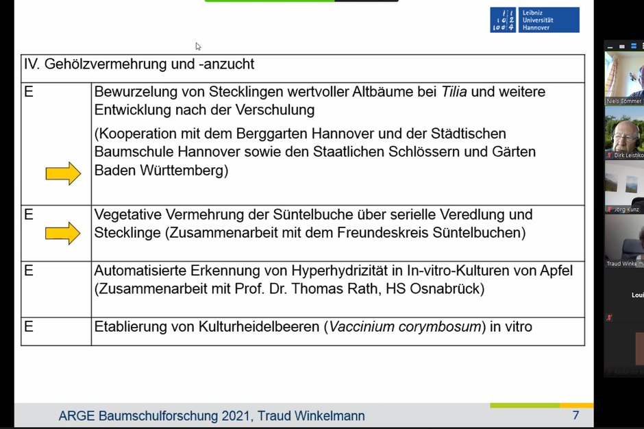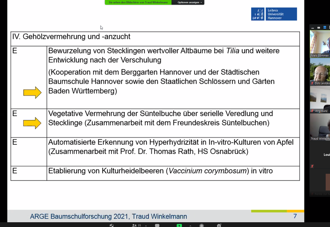 Wie im vergangenen Jahr auch, wurde die Sitzung der diesjährigen ARGE Baumschulforschung wieder per Videokonferenz durchgeführt.
