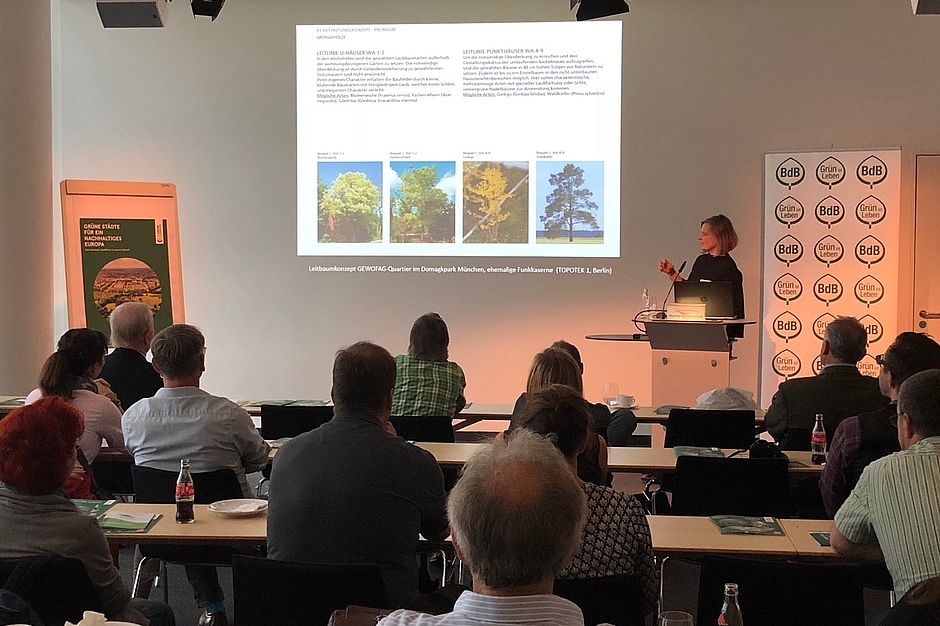Auch Prof. Dr. Swantje Duthweiler von der Hochschule Weihenstephan-Triesdorf rief in ihrem Vortrag zu urbanen Pflanzkonzepten dazu auf, die Versiegelung von Flächen zu vermeiden und die Entsiegelung voranzutreiben: „Es ist generell wichtig, für mehr Stadtgrün einzutreten, aber es ist ebenfalls von größter Bedeutung, dieses Stadtgrün hochwertig und sachgerecht anzulegen, damit es lange einen Nutzen hat.“ In dicht besiedelten Gebieten eigneten sich mehrere kleine Grünflächen insbesondere dort, wo größere Parks weiter weg seien: „Bäume sind aufgrund ihrer Schattenwirkung und Filterleistung hocheffizient für das Stadtklima.“