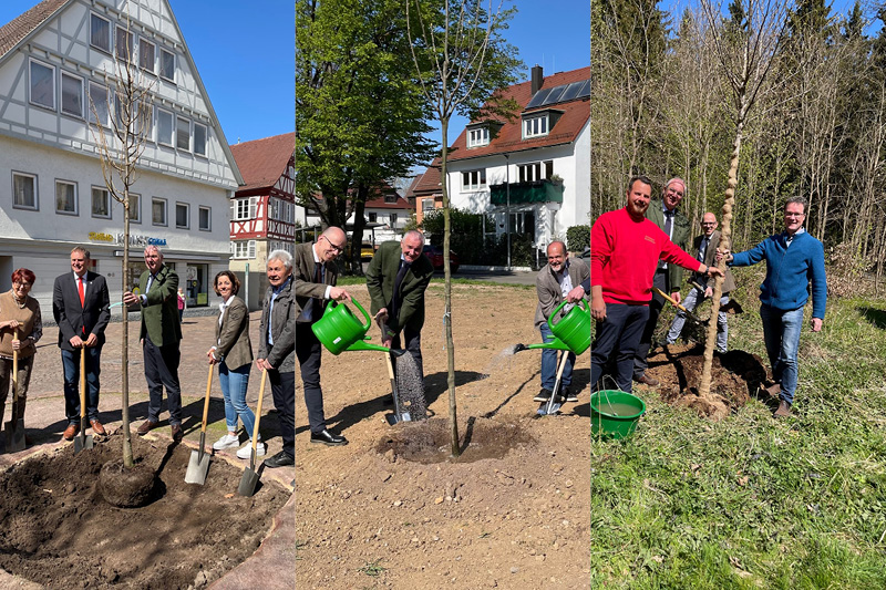 Gemeinsam mit dem Vorsitzenden des Umweltausschusses des Deutschen Bundestages, Harald Ebner, ganz rechts, pflanzten BdB-Präsident Helmut Selders und Hauptgeschäftsführer Markus Guhl eine Flatterulme (Ulmus laevis) in Ebners baden-württembergischen Wahlkreis Schwäbisch Hall-Hohenlohe.