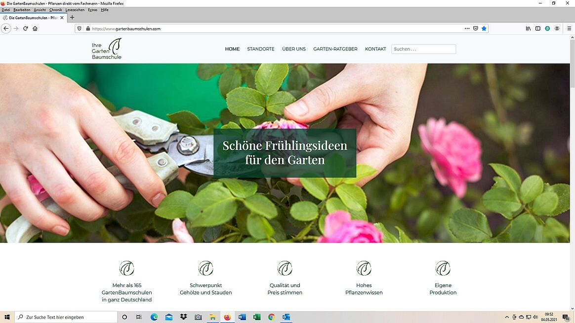 Anfang Mai war es soweit: Die Freischaltung der neu gestalteten GBV-Homepage für den Hobbygärtner – www.gartenbaumschulen.com – konnte verkündet werden. Die Seite wurde von der Agentur Harries Plantdesign - in Zusammenarbeit mit der GBV-Geschäftsstelle und dem Aktionsbeirat der GartenBaumschulen - komplett neu aufgebaut und bietet eine frische Optik. Eingeflossen sind viele neue Elemente wie u.a. der Instagram-Auftritt der GartenBaumschulen, eine moderne Mitgliedersuche und das Gartenlexikon mit 2.000 Gehölzbeschreibungen. Die Tipps werden zukünftig suchmaschinengerecht aufbereitet. Damit wird der Begriff GartenBaumschulen mehr Gartenfreunde erreichen und an Bekanntheit gewinnen.