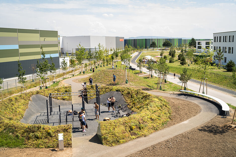 Die Angebote im Park, zu denen ein Mehrzweckspielbereich, ein Skatepark, Tischtennisplatten, Laufbahnen, ein Wiesentheater, Sonnenliegen und mehrere historische Installationen gehören, geben den Anwohnern die Möglichkeit zu einer guten Work-Life-Balance und passenden Freizeitgestaltung.