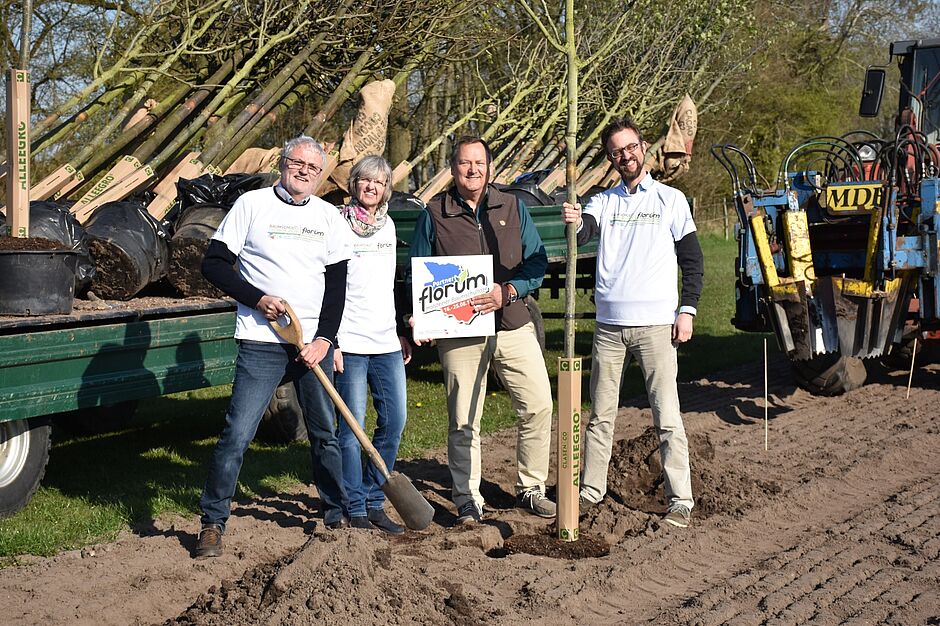 Gruppenbild der Veranstalter (v.l.n.r.): Dr. Lösing, C. Hilger (beide BTB Baumschultechnik und Beratung als Organisatoren der Veranstaltung), Dr. Schoppa, BdB-LV Schleswig-Holstein, J. P. Beese, LK Schleswig-Holstein; Foto: Dr. Wrede