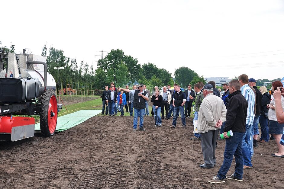 Auf der Vorführfläche laufen bereits die Vorbereitungen: Nordmannstannen, Rosen- und Apfelunterlagen sowie Alleebäume werden bzw. wurden in Reihenabständen von 50 bis 300 cm gepflanzt. Dort sollen an den Messetagen des 29. und 30. August Maschinenvorführungen stattfinden. Bisher haben sich bereits über 200 Aussteller angemeldet, es gibt noch freie Plätze.