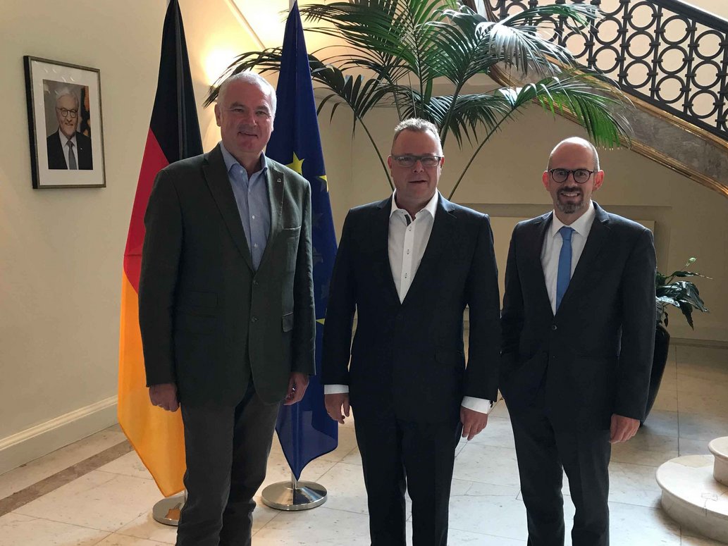 Auch beim Meinungsaustausch mit dem Mitglied des Deutschen Bundestages Michael Stübgen (CDU) ging es um aktuelle Themen wie die EU-Quarantäneschädiger und die Auswirkungen und Gegenmaßnahmen für die Baumschulbranche sowie über die Zukunft des integrierten Pflanzenschutzes und Nachhaltigkeit der Produktion.