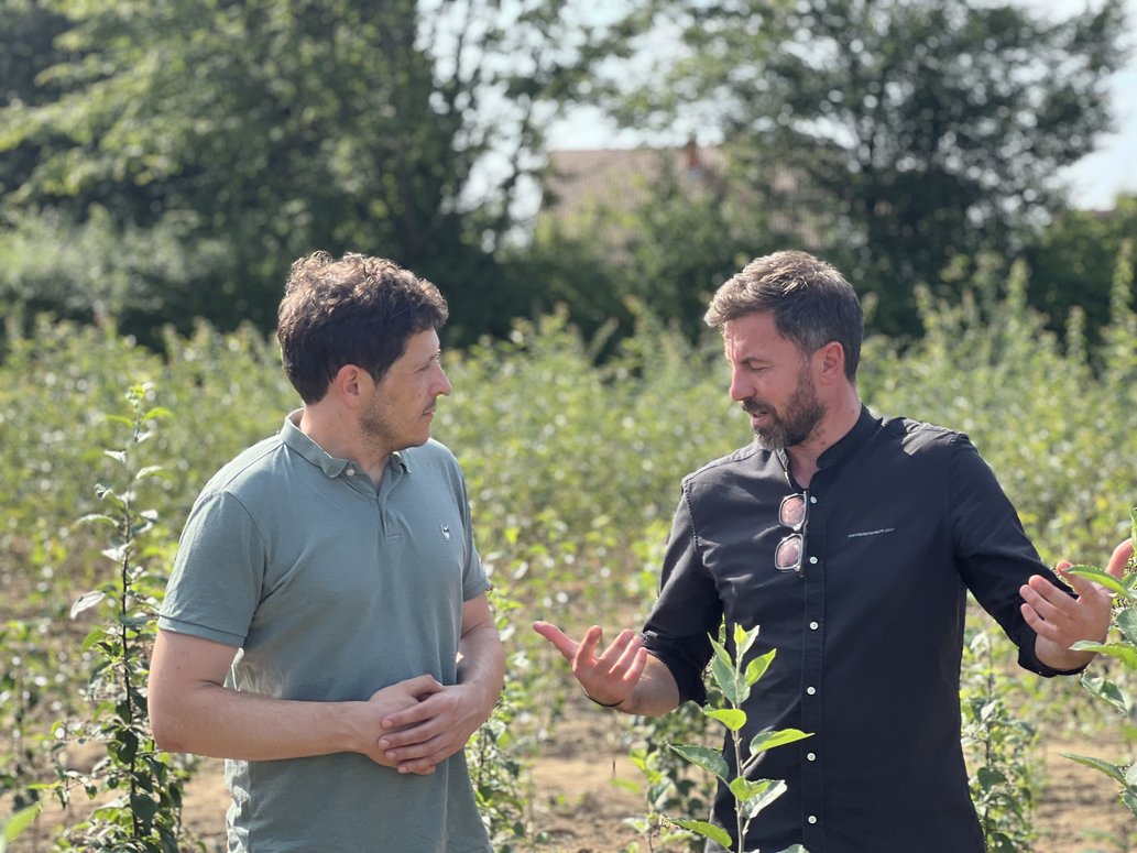 Bei über 30 Grad zeigten die Inhaber Christian und Wilhelm Müller ihrem Gast Mitte August die für die Baumschulwirtschaft typischen Arbeitsläufe. So probierte sich Jürgen Kretz unter fachmännischer Anleitung am Pflanzschnitt eines Apfelbaumes aus. Außerdem versuchte er sich auch an der Veredelung eines Apfelbaumes. Die Veredelung ist eine Methode zur Vermehrung von Bäumen und Sträuchern. Das Prinzip dabei ist, dass zwei Pflanzenteile mit unterschiedlichem Erbgut zusammengeführt werden und miteinander zu einer neuen Pflanze verwachsen.