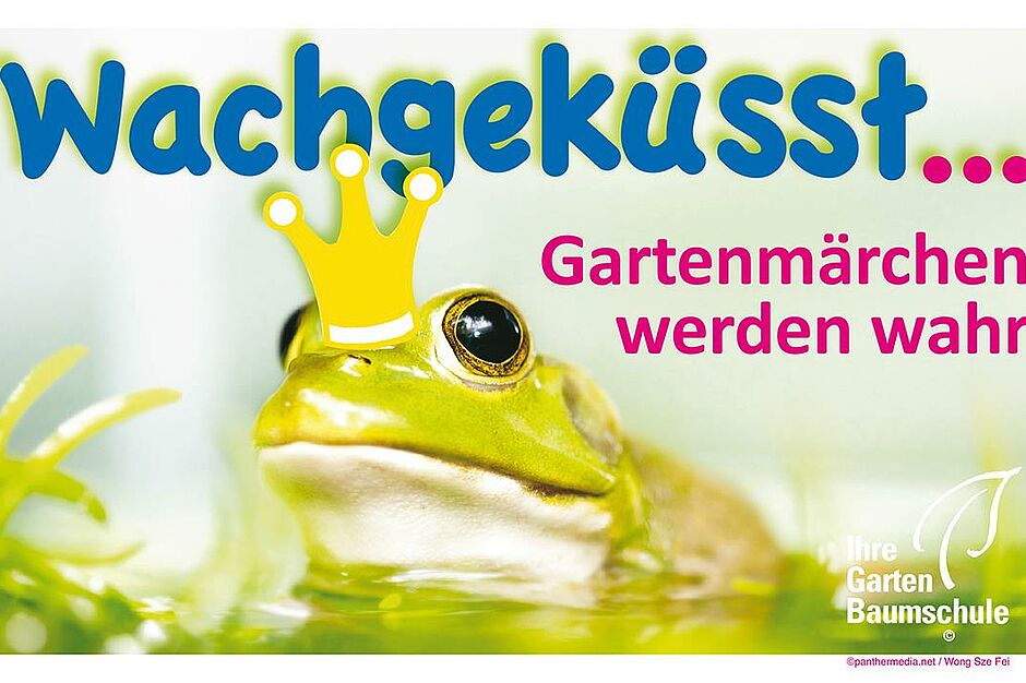 Für 2019 hat der Aktionsbeirat der GartenBaumschulen unter dem Motto "Wachgeküsst" das Thema "Märchen" für alle GartenBaumschulen in Form eines kleinen Infopaketes aufbereitet. Das Aktionspäckchen ist vor allem als kostenloser Ideenspender für Betriebsaktionen konzipiert. Im Mittelpunkt steht dabei ein neues Zaunbanner, das mit einem Froschmotiv unmittelbar an die Märchenthematik anknüpft und als Mittelpunkt für eine Aktion im Betrieb genutzt werden kann. Dazu stehen allen Betrieben auf der GBV-Homepage www.maxigruen.de eine umfangreiche Ideenliste, eine Liste von Gehölzen mit Märchenbezug, ein weiteres Bildmotiv „Dornröschen“ und zwei überarbeitete Flyer für die Umsetzung des Themas im Betrieb kostenlos zur Verfügung. Das Zaunbanner kann individuell bestellt werden und kostet 65,00 €. Mit diesen Elementen können GartenBaumschulen ohne großen Vorlauf nach eigenem Bedarf und Möglichkeiten das Thema „Märchen“ betriebsindividuell umsetzen. Dabei sind von einer kleinen Aktionsfläche bis zu einer "Märchenstrasse" oder sogar einem "Märchenwald" im Verkaufsgelände viele Varianten auch über einen längeren Zeitraum denkbar. So können beispielsweise mit wenig Aufwand passende Gehölze zu bekannten Märchen mit den passenden Textzitaten aus den GBV-Listen direkt kombiniert und in Szene gesetzt werden. Dazu passen kurze Zusammenfassungen der jeweiligen Märcheninhalte, die sich leicht über das Internet finden und ausdrucken lassen. Zusammen mit den Mitarbeitern können in einem betrieblichen Teamwork anhand der GBV-Ideenliste weitere Aktionen ersonnen und umgesetzt werden.