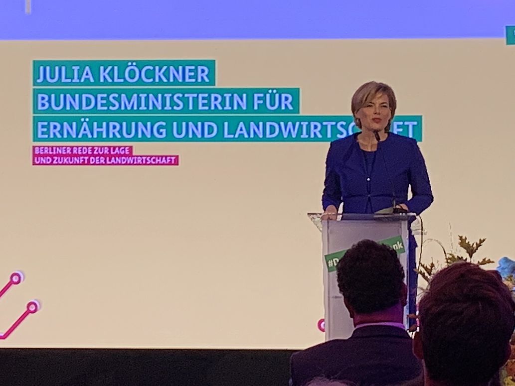 Bundeslandwirtschaftsministerin Julia Klöckner während ihrer Grundsatzrede zur Zukunft der Landwirtschaft im Rahmen des Politischen Erntedanks des BMEL. Foto: Helmut Selders für den BdB