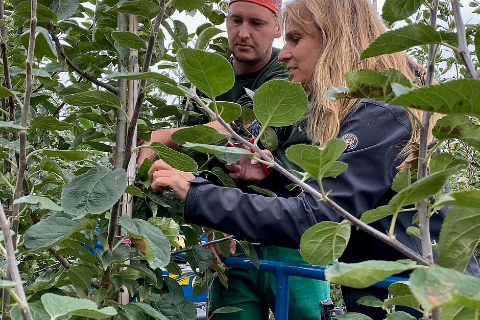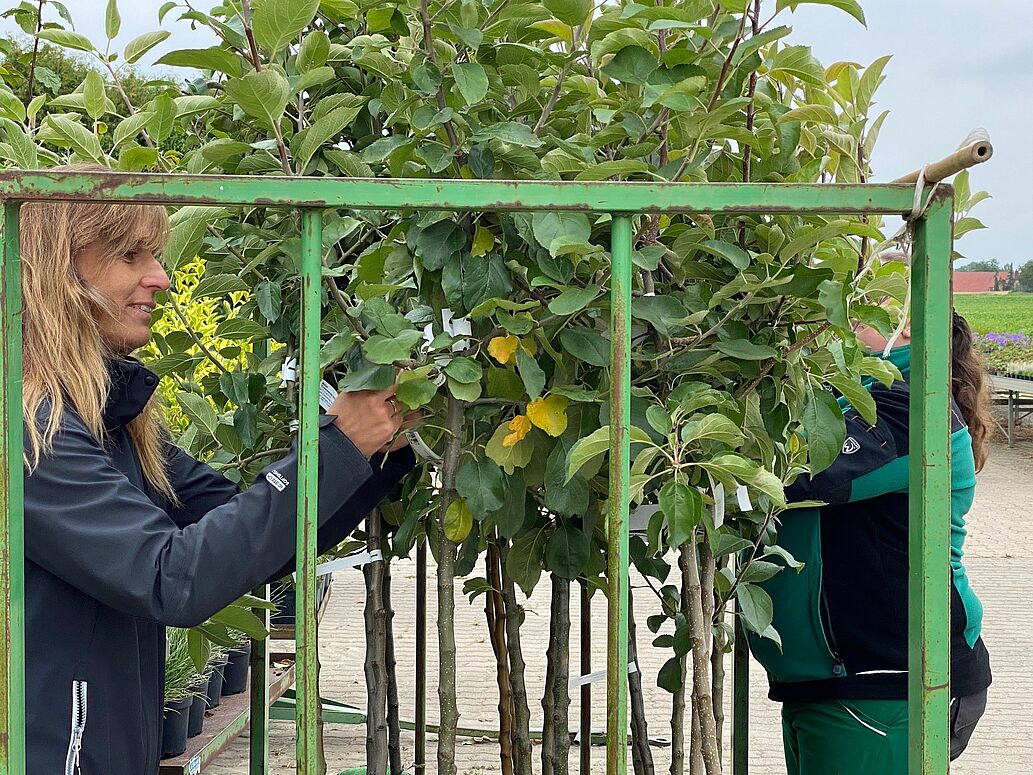 Katja Keul (Bündnis 90/Die Grünen) hat ihr Praktikum in der Baumschule Röhler im niedersächsischen Heuerßen absolviert. Nach dem Schnitt an Obstbäumen, dem Heften der Terminale und der Etikettierung von Gehölzen blieb Zeit für einen Meinungsaustausch über Themen, die die Baumschulbranche allgemein und die Baumschule Röhler konkret bewegen wie der Fachkräftemangel, der Pflanzenpass, Torfersatzstoffe, Zukunftsbäume sowie Beiträge für die Biodiversität.