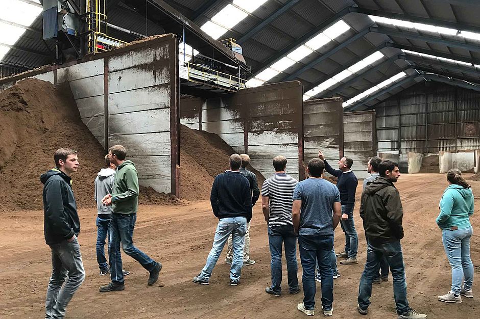 Bei Stender AG werden aus einzelnen Rohstoffen und Erden gärtnertaugliche Substrate produziert. Die Delegation der Jungen Unternehmer überzeugte sich von der ausgezeichneten Qualität. Foto: BdB