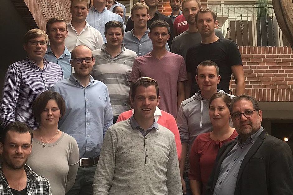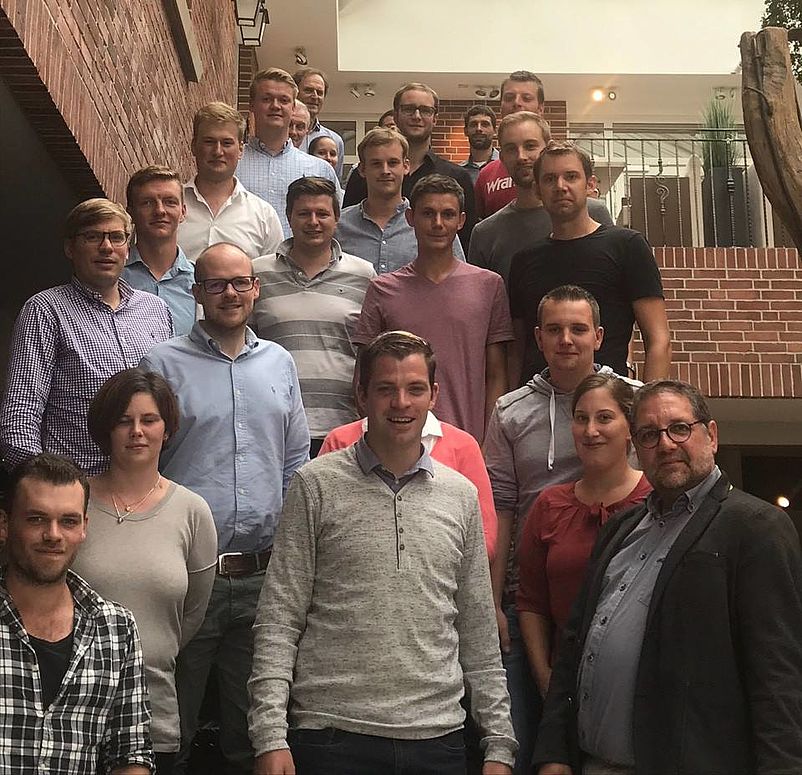 Zwanzig junge Unternehmer zelebrieren gemeinsam mit Herrn Peter Meiwald (Bündnis 90 / Die Grünen) das diesjährige Seminar der Jungen Unternehmer in Papenburg. Foto: BdB