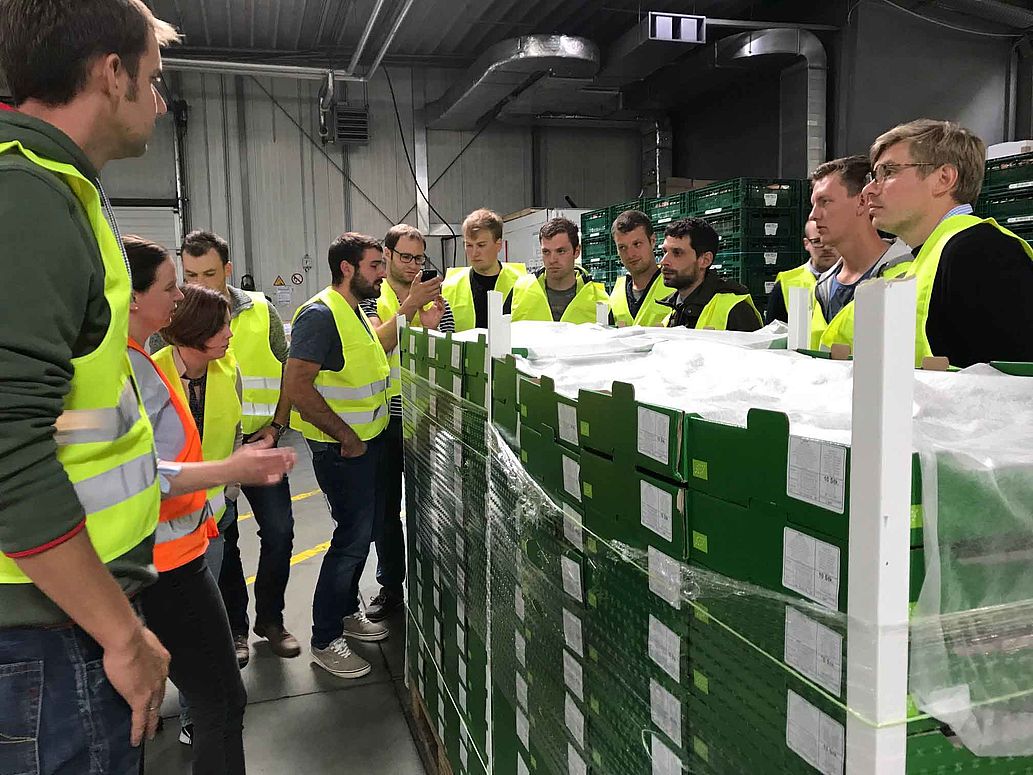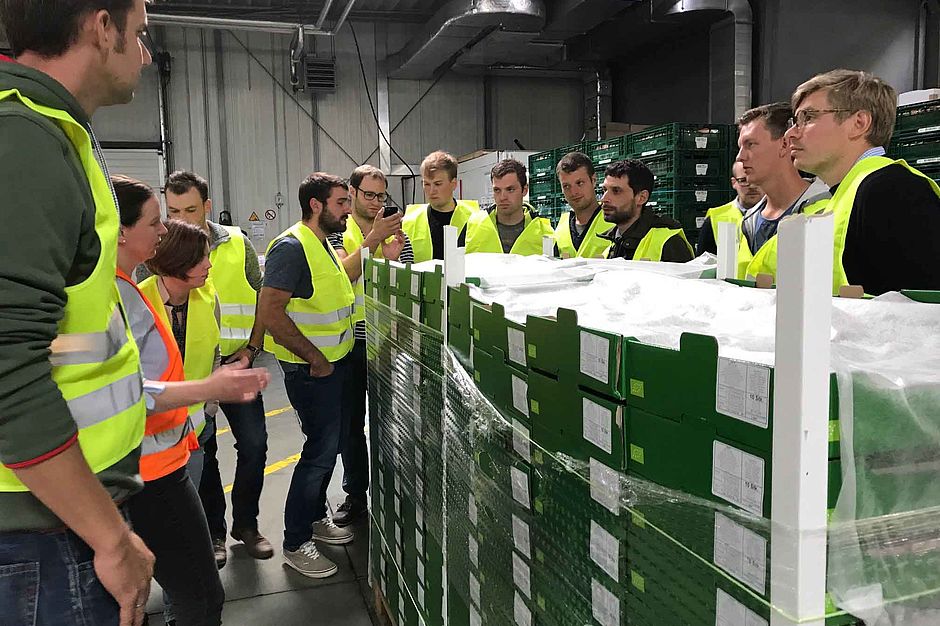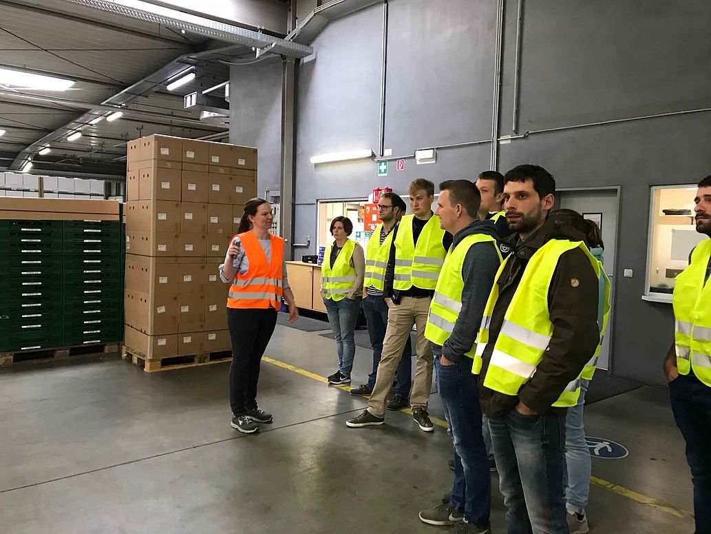 Im Sinne des „über den Tellerrand blicken“ begaben sich die Jungen Unternehmer am zweiten Tag in die Gartenbauzentrale Papenburg, einer Gartenbaugenossenschaft, die im Sinne seiner regional ansässigen Mitglieder den Vertrieb von frischen Kräutern, Gurken, Tomaten und einigen Balkonpflanzen für den Lebensmitteleinzelhandel übernimmt. Die Teilnehmer zeigten sich beindruckt von den Dimensionen des Betriebes und der Geschwindigkeit, mit welcher die Mitarbeiterinnen und Mitarbeiter die versandfertige Ware von A nach B bewegten. Getreu dem Motto „Just in Time“ gilt Pünktlichkeit und einwandfreie Ware als absolute Musskriterien, da andernfalls Ware nicht mehr angenommen wird.