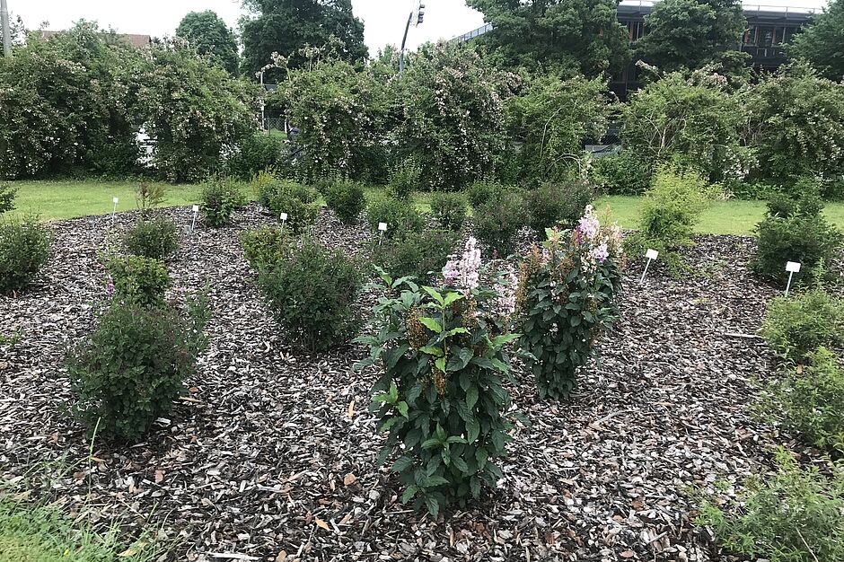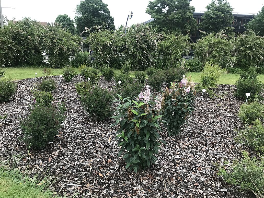 Am 11.06.2019 reiste Marius Tegethoff nach Stuttgart-Hohenheim, um sich gemeinsam mit Herrn Matthias Urmetzer ein Bild vom Sichtungsstandort Stuttgart der Gehölzsichtung und der ADR zu machen. Stuttgart-Hohenheim ist neben Heidelberg eine der zwei Lehr- und Versuchsanstalten für Gartenbau in Baden-Württemberg und hiervon der Standort, an dem die Gehölzsichtung des BdB verortet ist. Hohenheim befindet sich am südlichen Rand der Landeshauptstadt Stuttgart auf der so genannten Filderebene, einer fruchtbaren Lössebene auf knapp 400 m NN. Die Jahresdurchschnittstemperatur liegt bei 8,8°C, der jährliche Niederschlag im Mittel bei knapp 700 l/m² (Mittelwerte der Jahre 1961-1990; Meteorologisches Institut der Universität Hohenheim)