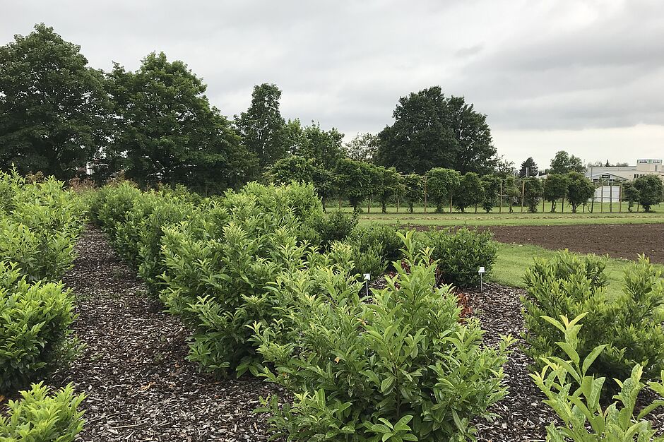 Der Standort Stuttgart bietet der Bundesgehölzsichtung beste Voraussetzungen, um Sorten und Arten auf ihre Gartenwürdigkeit zu überprüfen. Seit vielen Jahren engagiert sich die SfG als einer der zwölf Standorte der deutschlandweiten Sichtung, die vom Bund deutscher Baumschulen getragen wird. In Hohenheim sind alle aktuellen Prüfsortimente aufgepflanzt: Syringa, Prunus laurocerasus, Prunus lusitanica und Photinia x fraseri, Carpinus, Hamamelis, Hydrangea macrophylla sowie Lagerstroemia. Abgeschlossene Sortimente der Bundesgehölzsichtung werden soweit möglich vorgehalten, um sie weiterhin beobachten und im Rahmen von Vorträgen und Führungen vorstellen zu können (z.B. Hydrangea paniculata, Wisteria). Neben den kulturtechnischen Herausforderungen scheut sich die SfG auch nicht, bei Verdachtsfällen auf auftretende Pflanzenkrankheiten den amtlichen Pflanzenschutzdienst zu Rate zu ziehen. Der kritische Blick wird letztlich benötigt, um gesunde und vitale Sorten für die Praxis und den Konsumenten klar identifizieren zu können.