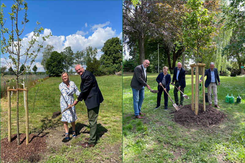 In Langelsheim pflanzten Dunja Kreise, SPD, und BdB-Präsident Helmut Selders einen Apfelbaum neben einer sozialen Einrichtung.