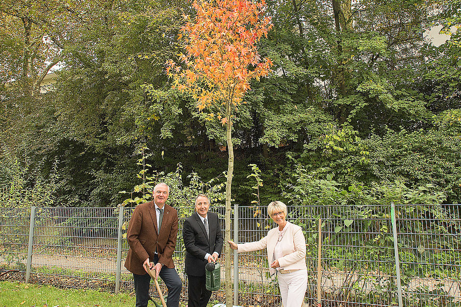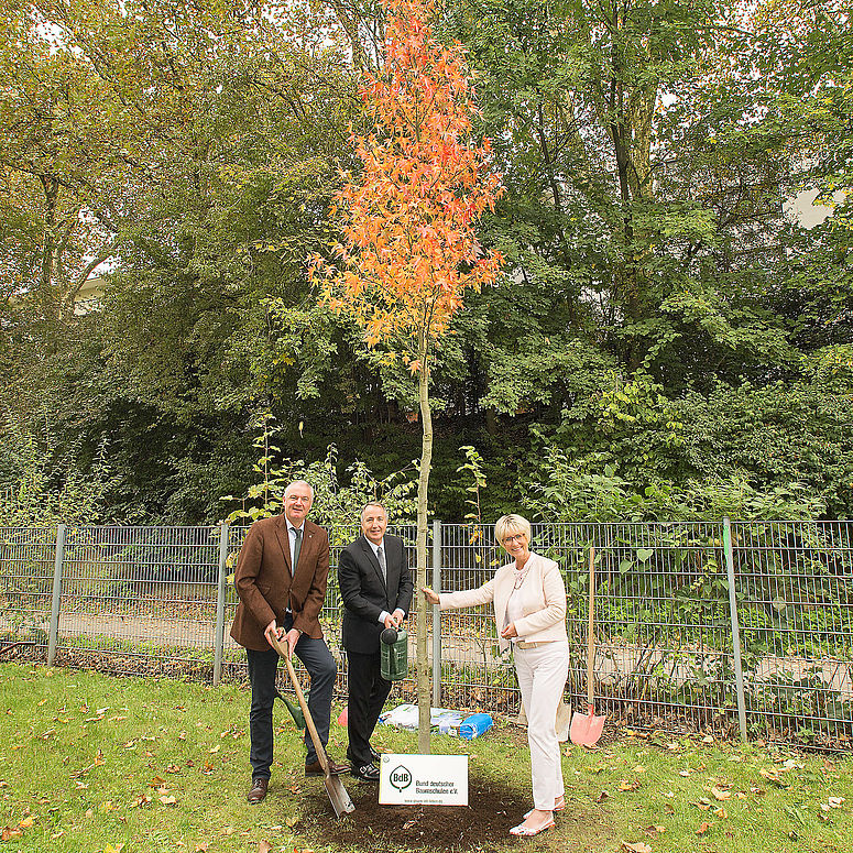 Ein Amberbaum ziert seit heute die Zufahrt zum Parkplatz nahe der Grugahalle und des Atlantic Congress Hotels. Stellvertretend für den BdB spendete Präsident Helmut Selders den Laubbaum aus eigener Produktion. Der Amberbaum gilt als stressresistent und wenig anfällig für Schädlinge. In Zeiten des Klimawandels ist er daher ein viel gefragter Baum für die Begrünung von Städten. Darüber hinaus verfügt er über eine ansprechende Herbstfärbung.