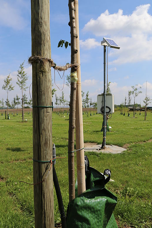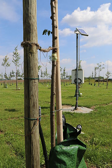 Modernste Technik wie etwa Sensoren zur Messung von Oberflächentemperaturen oder der Bodenfeuchte kommen zum Einsatz, um permanent und zielgenau alle Einflussfaktoren auf das Wachstumsverhalten der Zukunftsbäume zu dokumentieren.