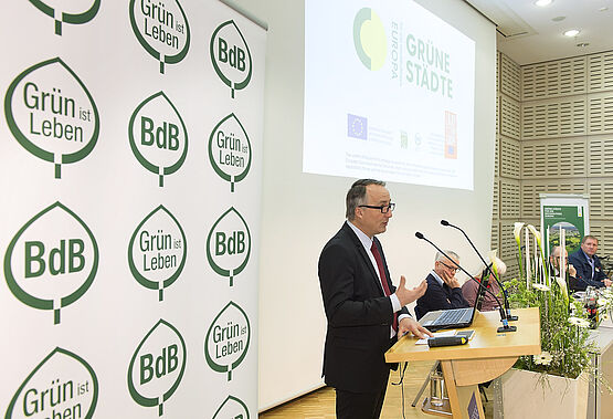 In Kooperation mit der Stiftung „Die grüne Stadt“ und der Messe Essen lud der BdB lokale Entscheider, Stadtplaner und Landschaftsarchitekten zum Seminar unter dem Thema „Stadtgrün im Klimawandel“ ein.