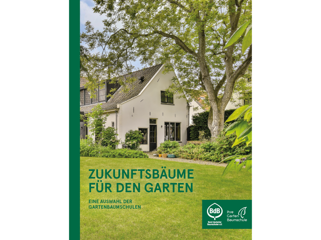 Der Verband der GartenBaumschulen BdB e.V. (GBV) und der Bund deutscher Baumschulen (BdB) e.V. haben gemeinsam die Broschüre „Zukunftsbäume für den privaten Garten“ veröffentlicht. Auf 76 Seiten werden 60 klimaresiliente Bäume vorgestellt, mit denen Gärten zukunftsfest werden. Darüber hinaus werden Tipps zur Gestaltung des Gartens mit den portraitierten Bäumen sowie zum richtigen Pflanzen gegeben. Die Broschüre umfasst das Wissen von rund 150 GartenBaumschulen aus Deutschland und Österreich. Mit ausdrucksstarken Bildern und einer übersichtlichen Aufbereitung der Charakteristika der einzelnen Gehölze bietet sie Endkund:innen einen fundierten Überblick und eine professionelle Hilfestellung für die klimafeste Gartengestaltung.